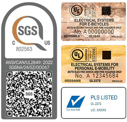 The UL website offers purchasing guidance, including the recommendation that you check the product for its UL certification mark and verify its status. If the PW doesn’t bear an obvious UL-certification label, try searching the certifications databases maintained by UL, SGS, and TUV. In addition, avoid buying a PW that has no certification label but claims on its packaging to have been “tested to/in accordance with” a UL standard. Note: The UL website offers lists of manufacturers who make UL-certified e-bikes and other PWs that UL itself has certified.